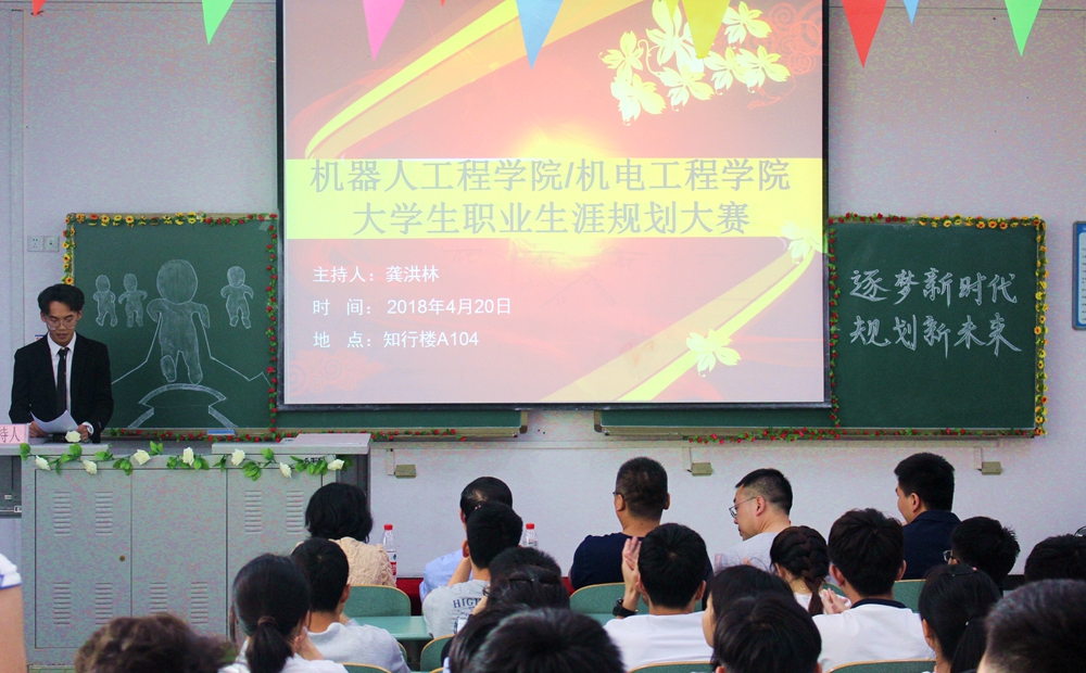 本次比赛旨在帮助2017级员工树立正确的人生观、职业观和学业观,合理定位自身发展方向,科学规划四年老员工活和职业生涯,展示一年来老员工涯规划工作的成果。比赛开始后,李树明分享了霍兰德“人格-职业类型匹配理论”中的兴趣岛游戏。接着,参赛的7位选手从面临的社会环境和自我剖析入手,淋漓尽致地呈现了自己量身定制的大学四年规划及毕业后的职业生涯规划。最终,来自机械电子工程(长航)班廖万明荣获本次大赛一等奖,机械工程2班王加森、机械电子程1班柯敏荣获二等奖,机械电子工程(长航)班陈海涛、材料成型及控制工程1班吕韵瑶、机械工程2班李金林、机械工程1班陈英杰荣获三等奖。