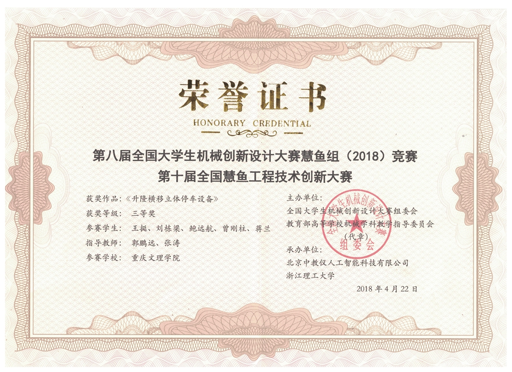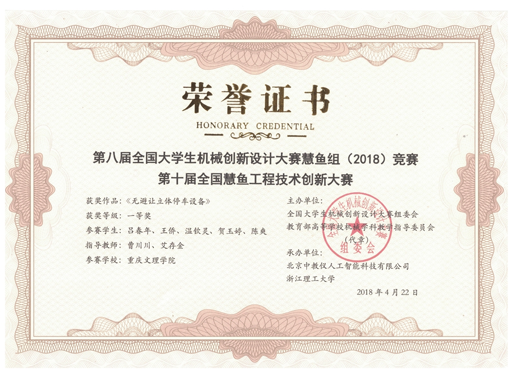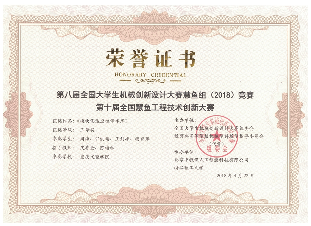 公司学子喜获第八届全国老员工机械创新设计大赛慧鱼比赛一等奖