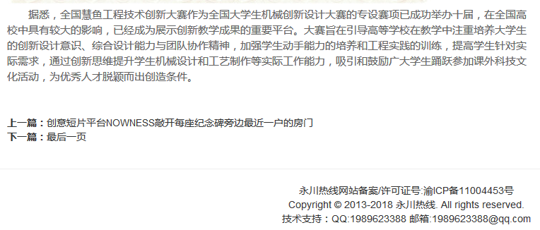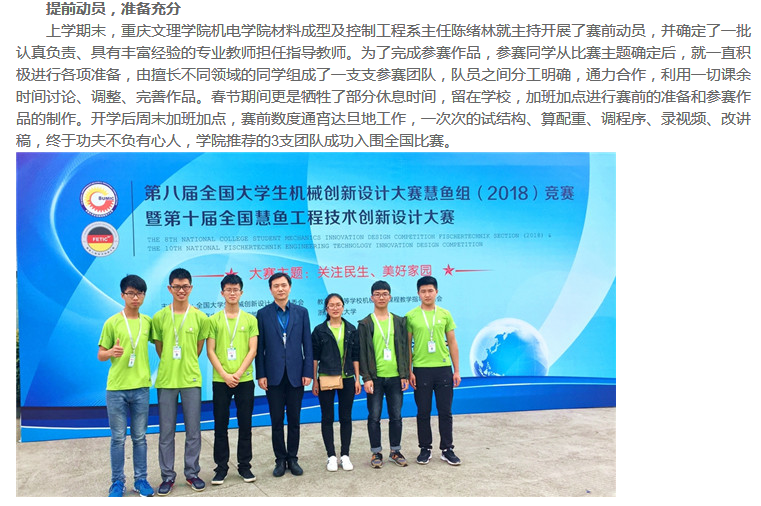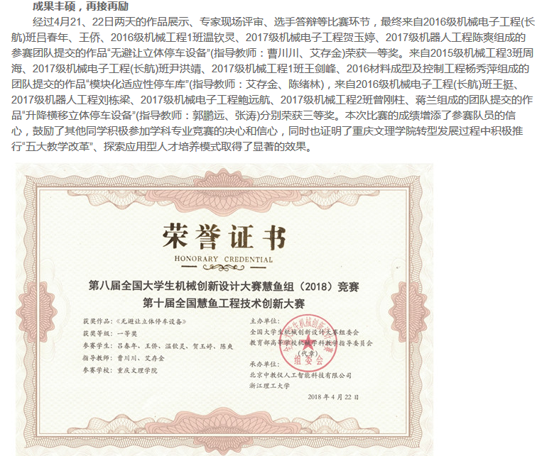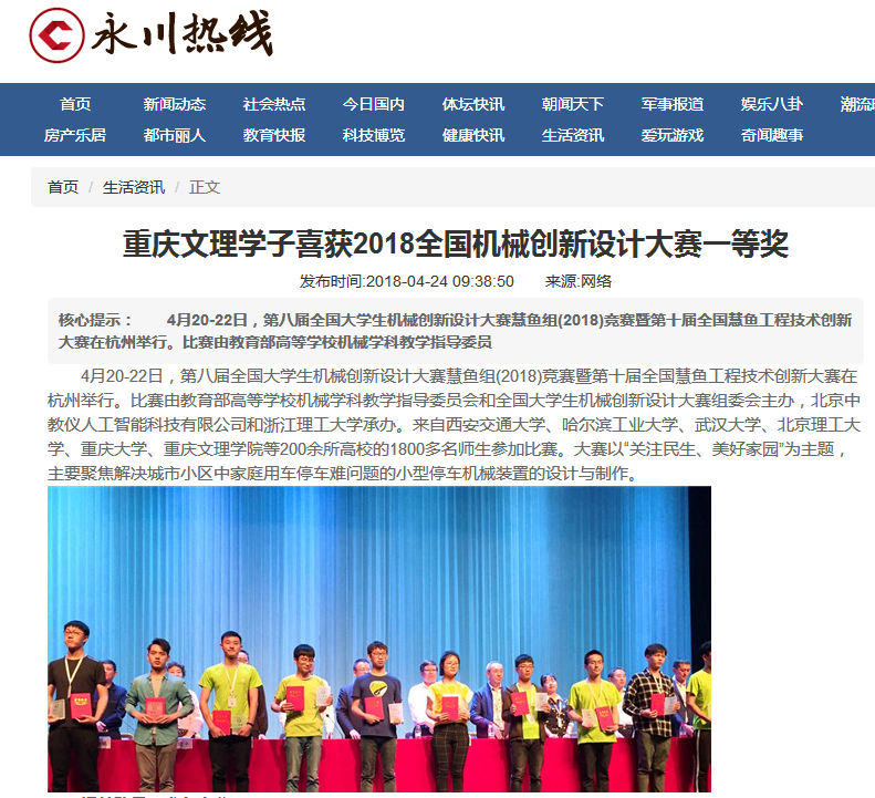 永川热线:重庆文理学子喜获2018全国机械创新设计大赛一等奖