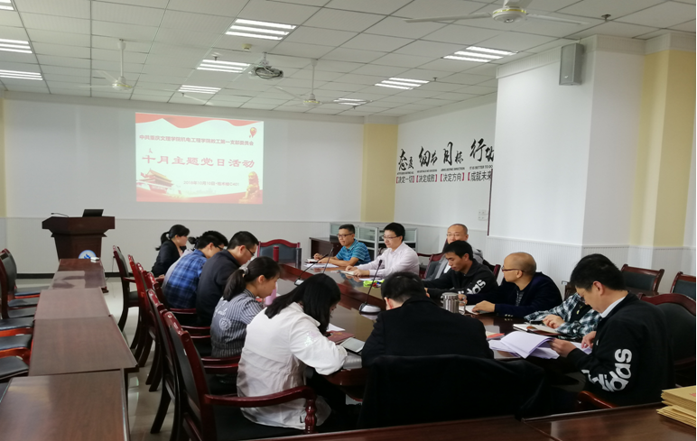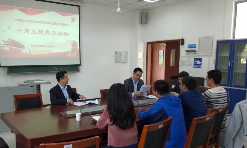 10月10日下午,教工一、二支部主题党日分别在格术楼C401、A201举行。此次主题党日旨在进一步丰富和完善9月主题党日学习,全面贯彻新《中国共产党纪律处分条例》规定以及“全国宣传思想工作会议精神“全国组织工作会议精神”。主题党日分别由教工一、二支部书记伍国果、刘辉主持。两个支部全体在公司党员参加了主题党日。