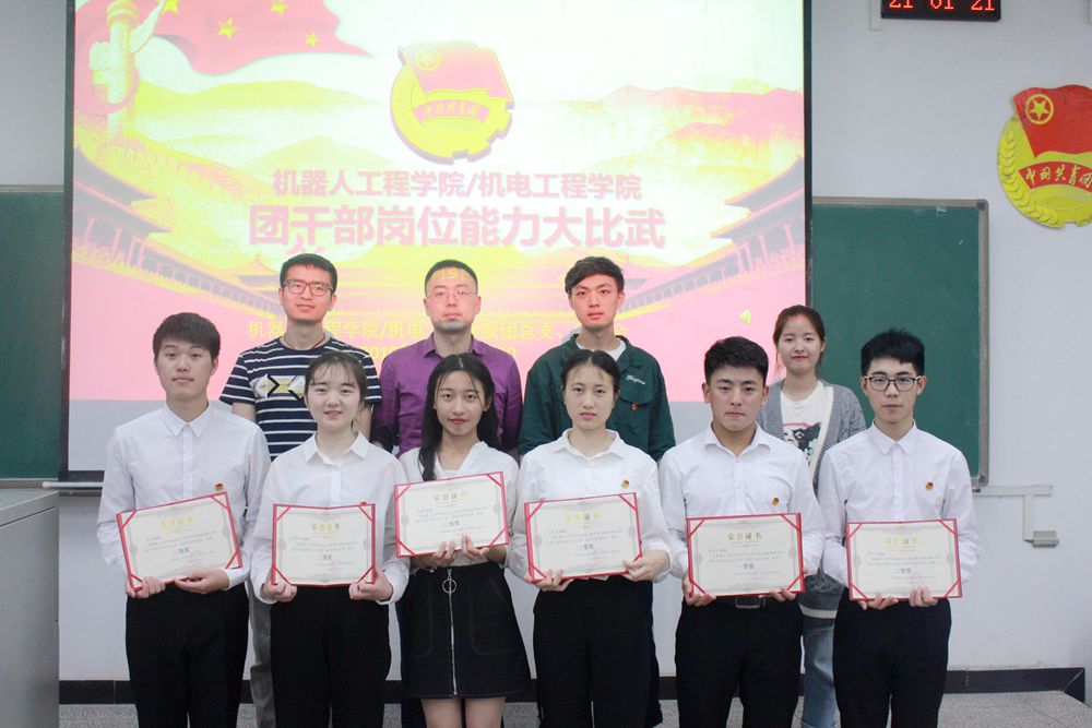 4月9日晚,公司团干部岗位能力大比武在知行楼B105举行。校学工部副部长、校团委副书记向明、院团总支副书记李兴成、赵芮伶、院员工会主席张垚、校团委组织规划部副部长李金鑫出席次活动。来自全院各年级团员青年110多人参加了活动。活动旨在激励公司团干部继承和发扬五四运动优良传统,铭记历史,不忘使命,着力培养团干部爱国主义精神,切实增强团干部的理论素养和岗位能力。