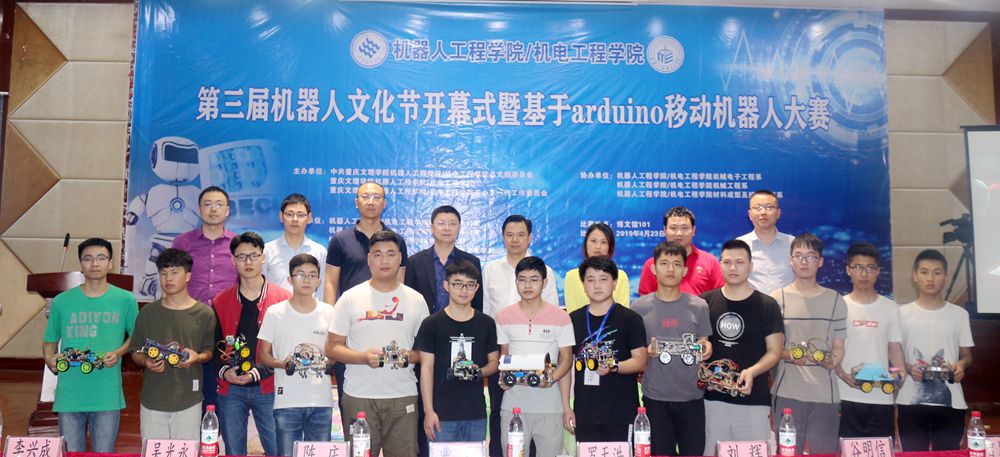 4月23日晚,机器人工程公司/机电工程公司第三届机器人文化节开幕式暨基于Arduino移动机器人大赛决赛在博文馆101举行。公司经理罗天洪、党总支书记曹勇以及教学办、学工办、学科办、机械电子工程系、实训中心相关主任和专业教师出席开幕式。来自全院各年级员工代表近200人参加了开幕式。
