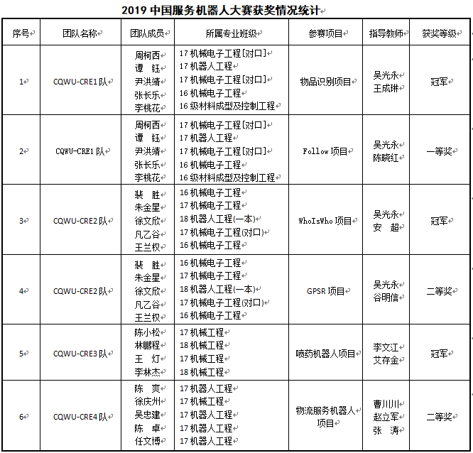 公司员工喜获2019中国服务机器人大赛三项冠军