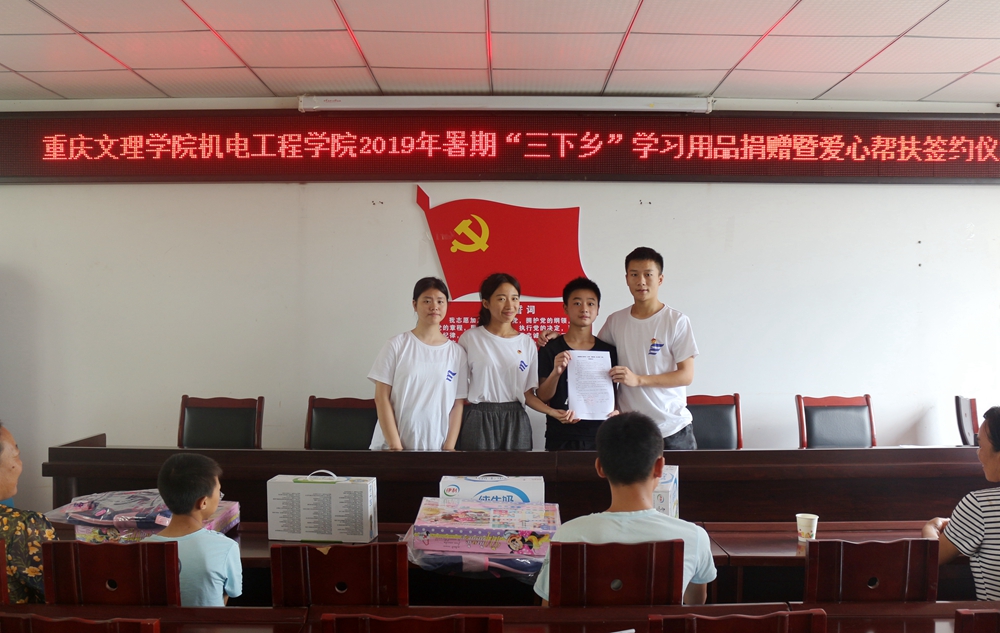 11日上午,社会实践团在团总支书记李兴成带领下来到了云龙村村委会。在村委会的协助下,志愿者们与贫困家庭儿童进行了面对面的交流,了解了他们的家庭情况和个人情况,签订了对口帮教协议,赠送了学习和生活用品,深入家中进行了家访,建立了长期跟踪联系帮扶的长效机制。